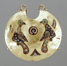 Keywords: Ukrainian - Temple Pendant (Kolt) with Two Birds - Walters 44302.jpg Kolty singular kolt are pendants that attached to a woman's headdress at the temples The hollow space within the two concave gold disks that compose a kolt contained perfumes or scented oils The pendants were usually decorated on both sides since they could rotate as the woman walked This kolt is decorated with delicate cloisonné enamel a technique learned from Byzantine masters starting in the late 10th century Kolty were frequently worn at wedding ceremonies; the lilies center birds and seeds that fleck the birds' breasts are all symbols of fertility The bird is also an image retained from Russia's pagan past century 12 Medieval electrum cloisonné enamel cm 5 2 4 7 0 8 accession number 44 302 24299 Henri Daguerre Paris by purchase Henry Walters city Baltimore Walters Art Museum Henry Walters Acquired by Henry Walters 1925 Early Christian and Byzantine Art Baltimore Museum of Art Baltimore 1947 Russian Art Icons and Decorative Arts from the Origin to the Twentieth Century The Walters Art Gallery Baltimore 1959-1960 Jewelry - Ancient to Modern The Walters Art Gallery Baltimore 1979-1980 Russian Enamels The Walters Art Gallery Baltimore 1996-1997 Bedazzled 5 000 Years of Jewelry from the Walters Art Museum Frist Center for the Visual Arts Nashville; The John and Mable Ringling Museum of Art Sarasota; The Walters Art Museum Baltimore 2006-2009 Bedazzled 5 000 Years of Jewelry El Paso Museum of Art El Paso 2010 place of origin Kiev Ukraine Walters Art Museum license Byzantine and Early Russian art in the Walters Art Museum kolty Jewellery in the Walters Art Museum Media contributed by the Walters Art Museum needs category review Jewellery of Kievan Rus |