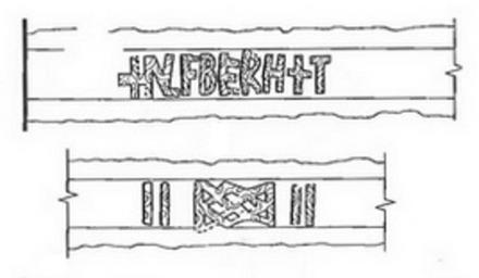 | Keywords: Надпіс Ulfberht і рамесны знак на мячы з Полацка.png be адпіс Ulfberht і амесны знак на мячы з Полацка en drawing of the blade inscription of an Ulfberht sword found in Polotsk Belarus unknown http //historylib org/historybooks/Pod-redaktsiey-E-A--Melnikovoy_Slavyane-i-skandinavy/43 author unknown PD-Art PD-ineligible Uploaded with UploadWizard History of Polack Ulfberht swords | ||||