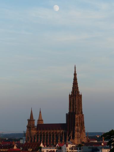 Keywords: ulm cathedral church münster dom cathedral architecture building romance thunderstorm moonlight moon abendstimmung ulm tower highest church tower in the world record world record city city view