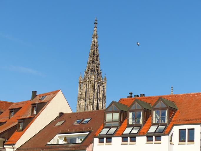 Keywords: ulm ulm cathedral city outlook city view münster view home homes sky church steeple roofs