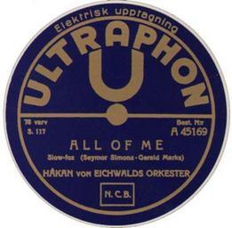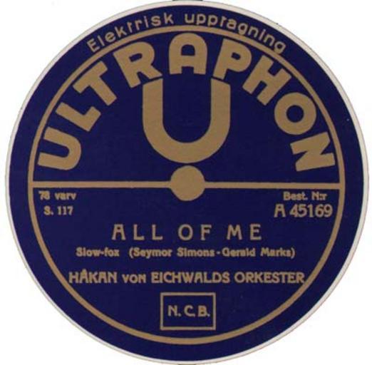 Keywords: Ultraphon-eichwald.jpg en Record label Ultraphon A 45169 All of me Håkan von Eichwalds orkester sv Skivetikett Ultraphon A 45169 All of me Håkan von Eichwalds orkester Håkan von Eichwalds orkester 1932 1939 LP Telestar TR 11144 1974 Ultraphon Berlin 1932 PD-old Record labels Håkan von Eichwald |