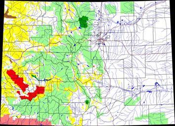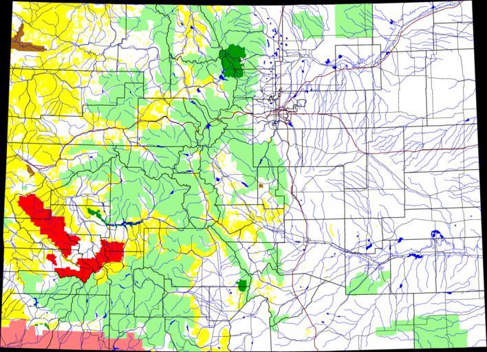 Keywords: Uncompahgre National Forest location in Colorado.png Uncompahgre National Forest highlighted in red The light green is other Forest Service land yellow is BLM land dark green is National Park brown is National Monument or National Historic Site pink is Indian reservation The reddish lines are Interstate Highways David Benbennick made this map with data from http //nationalatlas gov nationalatlas gov The map uses the azimuthal equidistant projection centered on -105 7167 39 1333 degrees latitude longitude The area outside Colorado is transparent so it should look nice on non-white backgrounds Eventually I will upload the 4 megabyte Metapost script I used to make this map In the mean time see http //www cam cornell edu/~dbenbenn/nationalatlas/Colorado_national_forests/map mp map mp own David Benbennick other versions Colorado national forest maps Uncompahgre National Forest Metapost diagrams |