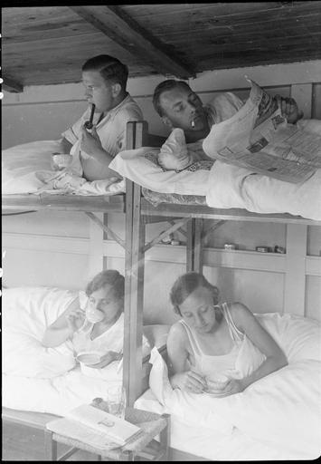Keywords: reading bunk beds bunkbeds camp cabin newspaper pipe drinking smoking cofee sven türck sventürck b&w bw blackandwhite monochrome black and white Young people on a camp stay KB id: turck_23015 Photo: Sven Türck (1897-1954) Department of Maps, Prints and Photographs, The Royal Library, Denmark. Young people on a camp stay KB id: turck_23015 Photo: Sven Türck (1897-1954) Department of Maps, Prints and Photographs, The Royal Library, Denmark. |