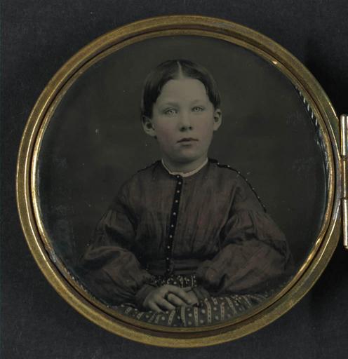 Keywords: library of congress libraryofcongress dc:identifier=http://hdl.loc.gov/loc.pnp/ppmsca.27489 dc:identifier=httphdllocgovlocpnpppmsca27489 xmlns:dc=http://purl.org/dc/elements/1.1/ xmlns:dc=httppurlorgdcelements11 striped skirts stripedskirts girl child locket jewellery jewelry war 19th century 19thcentury civil war civilwar union army unionarmy portraiture tintype hand-coloring handcoloring children in photography childreninphotography anonymous people indoor round circle [Unidentified girl seated in dress] [between 1861 and 1865] 1 photograph : tintype, hand-colored ; 4.6 cm diameter (locket) Notes: Title devised by Library staff. Case: Metal locket with belt interior and Union shield, flags and cannon. Gift; Tom Liljenquist; 2010; (DLC/PP-2010:105). Subjects: Girls--1860-1870. United States--History--Civil War, 1861-1865. Format: Lockets--1860-1870. Portrait photographs--1860-1870. Tintypes--Hand-colored--1860-1870. Rights Info: No known restrictions on publication. Repository: Library of Congress, Prints and Photographs Division, Washington, D.C. 20540 USA, hdl.loc.gov/loc.pnp/pp.print Part Of: Ambrotype/Tintype filing series (Library of Congress) (DLC) 2010650518 Liljenquist Family collection (Library of Congress) (DLC) 2010650519 More information about this collection is available at hdl.loc.gov/loc.pnp/pp.lilj Persistent URL: hdl.loc.gov/loc.pnp/ppmsca.27489 Call Number: AMB/TIN no. 2611 [Unidentified girl seated in dress] [between 1861 and 1865] 1 photograph : tintype, hand-colored ; 4.6 cm diameter (locket) Notes: Title devised by Library staff. Case: Metal locket with belt interior and Union shield, flags and cannon. Gift; Tom Liljenquist; 2010; (DLC/PP-2010:105). Subjects: Girls--1860-1870. United States--History--Civil War, 1861-1865. Format: Lockets--1860-1870. Portrait photographs--1860-1870. Tintypes--Hand-colored--1860-1870. Rights Info: No known restrictions on publication. Repository: Library of Congress, Prints and Photographs Division, Washington, D.C. 20540 USA, hdl.loc.gov/loc.pnp/pp.print Part Of: Ambrotype/Tintype filing series (Library of Congress) (DLC) 2010650518 Liljenquist Family collection (Library of Congress) (DLC) 2010650519 More information about this collection is available at hdl.loc.gov/loc.pnp/pp.lilj Persistent URL: hdl.loc.gov/loc.pnp/ppmsca.27489 Call Number: AMB/TIN no. 2611 |