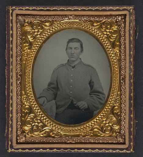 Keywords: library of congress libraryofcongress dc:identifier=http://hdl.loc.gov/loc.pnp/ppmsca.27175 dc:identifier=httphdllocgovlocpnpppmsca27175 xmlns:dc=http://purl.org/dc/elements/1.1/ xmlns:dc=httppurlorgdcelements11 people picture frame photo border round [Unidentified soldier in Confederate shell jacket with "I" buttons] [between 1861 and 1865] 1 photograph : sixth-plate ambrotype, hand-colored ; 9.4 x 8.2 cm (case) Notes: Title devised by Library staff. Case: Rinhart, no. 93. Gift; Tom Liljenquist; 2010; (DLC/PP-2010:105). Purchased from: Edwards Military Antiques & Rare Collectibles, Minneola, Florida, 2002. Subjects: Confederate States of America.--Army--People--1860-1870. Soldiers--Confederate--1860-1870. Military uniforms--Confederate--1860-1870. United States--History--Civil War, 1861-1865--Military personnel--Confederate. Format: Portrait photographs--1860-1870. Ambrotypes--Hand-colored--1860-1870. Rights Info: No known restrictions on publication. Repository: Library of Congress, Prints and Photographs Division, Washington, D.C. 20540 USA, hdl.loc.gov/loc.pnp/pp.print Part Of: Ambrotype/Tintype filing series (Library of Congress) (DLC) 2010650518 Liljenquist Family collection (Library of Congress) (DLC) 2010650519 More information about this collection is available at hdl.loc.gov/loc.pnp/pp.lilj Persistent URL: hdl.loc.gov/loc.pnp/ppmsca.27175 Call Number: AMB/TIN no. 2322 [Unidentified soldier in Confederate shell jacket with "I" buttons] [between 1861 and 1865] 1 photograph : sixth-plate ambrotype, hand-colored ; 9.4 x 8.2 cm (case) Notes: Title devised by Library staff. Case: Rinhart, no. 93. Gift; Tom Liljenquist; 2010; (DLC/PP-2010:105). Purchased from: Edwards Military Antiques & Rare Collectibles, Minneola, Florida, 2002. Subjects: Confederate States of America.--Army--People--1860-1870. Soldiers--Confederate--1860-1870. Military uniforms--Confederate--1860-1870. United States--History--Civil War, 1861-1865--Military personnel--Confederate. Format: Portrait photographs--1860-1870. Ambrotypes--Hand-colored--1860-1870. Rights Info: No known restrictions on publication. Repository: Library of Congress, Prints and Photographs Division, Washington, D.C. 20540 USA, hdl.loc.gov/loc.pnp/pp.print Part Of: Ambrotype/Tintype filing series (Library of Congress) (DLC) 2010650518 Liljenquist Family collection (Library of Congress) (DLC) 2010650519 More information about this collection is available at hdl.loc.gov/loc.pnp/pp.lilj Persistent URL: hdl.loc.gov/loc.pnp/ppmsca.27175 Call Number: AMB/TIN no. 2322 |