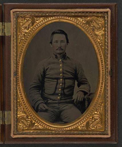 Keywords: library of congress libraryofcongress dc:identifier=http://hdl.loc.gov/loc.pnp/ppmsca.27169 dc:identifier=httphdllocgovlocpnpppmsca27169 xmlns:dc=http://purl.org/dc/elements/1.1/ xmlns:dc=httppurlorgdcelements11 people photo border round [Unidentified soldier in Confederate shell jacket with fringed pockets] [between 1861 and 1865] 1 photograph : quarter-plate tintype, hand-colored ; 12.5 x 10.1 cm (case) Notes: Title devised by Library staff. Case: (front) Berg, no. 1-22; (back) Berg no. 3-17. Gift; Tom Liljenquist; 2010; (DLC/PP-2010:105). Purchased from: The Union Drummer Boy, Gettysburg, Pennsylvania, 2002. Subjects: Confederate States of America.--Army--People--1860-1870. Soldiers--Confederate--1860-1870. Military uniforms--Confederate--1860-1870. United States--History--Civil War, 1861-1865--Military personnel--Confederate. Format: Portrait photographs--1860-1870. Tintypes--Hand-colored--1860-1870. Rights Info: No known restrictions on publication. Repository: Library of Congress, Prints and Photographs Division, Washington, D.C. 20540 USA, hdl.loc.gov/loc.pnp/pp.print Part Of: Ambrotype/Tintype filing series (Library of Congress) (DLC) 2010650518 Liljenquist Family collection (Library of Congress) (DLC) 2010650519 More information about this collection is available at hdl.loc.gov/loc.pnp/pp.lilj Persistent URL: hdl.loc.gov/loc.pnp/ppmsca.27169 Call Number: AMB/TIN no. 2316 [Unidentified soldier in Confederate shell jacket with fringed pockets] [between 1861 and 1865] 1 photograph : quarter-plate tintype, hand-colored ; 12.5 x 10.1 cm (case) Notes: Title devised by Library staff. Case: (front) Berg, no. 1-22; (back) Berg no. 3-17. Gift; Tom Liljenquist; 2010; (DLC/PP-2010:105). Purchased from: The Union Drummer Boy, Gettysburg, Pennsylvania, 2002. Subjects: Confederate States of America.--Army--People--1860-1870. Soldiers--Confederate--1860-1870. Military uniforms--Confederate--1860-1870. United States--History--Civil War, 1861-1865--Military personnel--Confederate. Format: Portrait photographs--1860-1870. Tintypes--Hand-colored--1860-1870. Rights Info: No known restrictions on publication. Repository: Library of Congress, Prints and Photographs Division, Washington, D.C. 20540 USA, hdl.loc.gov/loc.pnp/pp.print Part Of: Ambrotype/Tintype filing series (Library of Congress) (DLC) 2010650518 Liljenquist Family collection (Library of Congress) (DLC) 2010650519 More information about this collection is available at hdl.loc.gov/loc.pnp/pp.lilj Persistent URL: hdl.loc.gov/loc.pnp/ppmsca.27169 Call Number: AMB/TIN no. 2316 |