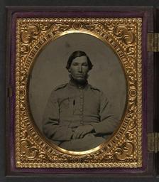 Keywords: library of congress libraryofcongress dc:identifier=http://hdl.loc.gov/loc.pnp/ppmsca.27154 dc:identifier=httphdllocgovlocpnpppmsca27154 xmlns:dc=http://purl.org/dc/elements/1.1/ xmlns:dc=httppurlorgdcelements11 people picture frame round photo border [Unidentified soldier in Confederate shell jacket] [between 1861 and 1865] 1 photograph : sixth-plate ambrotype, hand-colored ; 9.6 x 8.5 cm (case) Notes: Title devised by Library staff. Case: Berg, no. 1-120. Gift; Tom Liljenquist; 2010; (DLC/PP-2010:105). Subjects: Confederate States of America.--Army--People--1860-1870. Soldiers--Confederate--1860-1870. Military uniforms--Confederate--1860-1870. United States--History--Civil War, 1861-1865--Military personnel--Confederate. Format: Portrait photographs--1860-1870. Ambrotypes--Hand-colored--1860-1870. Rights Info: No known restrictions on publication. Repository: Library of Congress, Prints and Photographs Division, Washington, D.C. 20540 USA, hdl.loc.gov/loc.pnp/pp.print Part Of: Ambrotype/Tintype filing series (Library of Congress) (DLC) 2010650518 Liljenquist Family collection (Library of Congress) (DLC) 2010650519 More information about this collection is available at hdl.loc.gov/loc.pnp/pp.lilj Persistent URL: hdl.loc.gov/loc.pnp/ppmsca.27154 Call Number: AMB/TIN no. 2301 [Unidentified soldier in Confederate shell jacket] [between 1861 and 1865] 1 photograph : sixth-plate ambrotype, hand-colored ; 9.6 x 8.5 cm (case) Notes: Title devised by Library staff. Case: Berg, no. 1-120. Gift; Tom Liljenquist; 2010; (DLC/PP-2010:105). Subjects: Confederate States of America.--Army--People--1860-1870. Soldiers--Confederate--1860-1870. Military uniforms--Confederate--1860-1870. United States--History--Civil War, 1861-1865--Military personnel--Confederate. Format: Portrait photographs--1860-1870. Ambrotypes--Hand-colored--1860-1870. Rights Info: No known restrictions on publication. Repository: Library of Congress, Prints and Photographs Division, Washington, D.C. 20540 USA, hdl.loc.gov/loc.pnp/pp.print Part Of: Ambrotype/Tintype filing series (Library of Congress) (DLC) 2010650518 Liljenquist Family collection (Library of Congress) (DLC) 2010650519 More information about this collection is available at hdl.loc.gov/loc.pnp/pp.lilj Persistent URL: hdl.loc.gov/loc.pnp/ppmsca.27154 Call Number: AMB/TIN no. 2301 |