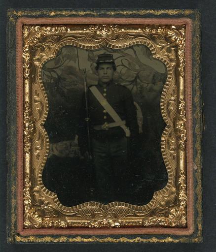 Keywords: library of congress libraryofcongress dc:identifier=http://hdl.loc.gov/loc.pnp/ppmsca.27351 dc:identifier=httphdllocgovlocpnpppmsca27351 xmlns:dc=http://purl.org/dc/elements/1.1/ xmlns:dc=httppurlorgdcelements11 u.s. civil war uscivilwar american civil war americancivilwar the civil war thecivilwar civil war civilwar war between the states warbetweenthestates united states of america unitedstatesofamerica u.s.a. usa the union theunion union the north thenorth yankee yankees soldier gun musket people picture frame photo border [Unidentified soldier in Union uniform with bayoneted musket in front of painted backdrop showing trees] [between 1861 and 1865] 1 photograph : ninth-plate tintype, hand-colored ; 7.3 x 6.1 cm (case) Notes: Title devised by Library staff. Case: Leather scroll geometric. Gift; Tom Liljenquist; 2010; (DLC/PP-2010:105). Subjects: United States.--Army--People--1860-1870. Soldiers--Union--1860-1870. Military uniforms--Union--1860-1870. Rifles--1860-1870. Bayonets--1860-1870. Backdrops--1860-1870. United States--History--Civil War, 1861-1865--Military personnel--Union. Format: Portrait photographs--1860-1870. Tintypes--Hand-colored--1860-1870. Rights Info: No known restrictions on publication. Repository: Library of Congress, Prints and Photographs Division, Washington, D.C. 20540 USA, hdl.loc.gov/loc.pnp/pp.print Part Of: Ambrotype/Tintype filing series (Library of Congress) (DLC) 2010650518 Liljenquist Family collection (Library of Congress) (DLC) 2010650519 More information about this collection is available at hdl.loc.gov/loc.pnp/pp.lilj Persistent URL: hdl.loc.gov/loc.pnp/ppmsca.27351 Call Number: AMB/TIN no. 2486 [Unidentified soldier in Union uniform with bayoneted musket in front of painted backdrop showing trees] [between 1861 and 1865] 1 photograph : ninth-plate tintype, hand-colored ; 7.3 x 6.1 cm (case) Notes: Title devised by Library staff. Case: Leather scroll geometric. Gift; Tom Liljenquist; 2010; (DLC/PP-2010:105). Subjects: United States.--Army--People--1860-1870. Soldiers--Union--1860-1870. Military uniforms--Union--1860-1870. Rifles--1860-1870. Bayonets--1860-1870. Backdrops--1860-1870. United States--History--Civil War, 1861-1865--Military personnel--Union. Format: Portrait photographs--1860-1870. Tintypes--Hand-colored--1860-1870. Rights Info: No known restrictions on publication. Repository: Library of Congress, Prints and Photographs Division, Washington, D.C. 20540 USA, hdl.loc.gov/loc.pnp/pp.print Part Of: Ambrotype/Tintype filing series (Library of Congress) (DLC) 2010650518 Liljenquist Family collection (Library of Congress) (DLC) 2010650519 More information about this collection is available at hdl.loc.gov/loc.pnp/pp.lilj Persistent URL: hdl.loc.gov/loc.pnp/ppmsca.27351 Call Number: AMB/TIN no. 2486 |