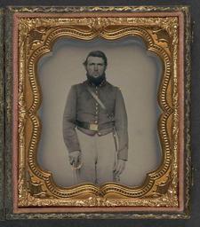 | Keywords: library of congress libraryofcongress dc:identifier=http://hdl.loc.gov/loc.pnp/ppmsca.26866 dc:identifier=httphdllocgovlocpnpppmsca26866 xmlns:dc=http://purl.org/dc/elements/1.1/ xmlns:dc=httppurlorgdcelements11 picture frame people photo border [Unidentified soldier in Union artillery uniform with red piping holding sword]  [between 1861 and 1865]  1 photograph : sixth-plate tintype, hand-colored ; 9.3 x 8.0 cm (case)  Notes:  Title devised by Library staff. Case: Leather geometric design. Gift; Tom Liljenquist; 2010; (DLC/PP-2010:105).  Subjects:  United States.--Army--People--1860-1870. Soldiers--Union--1860-1870. Military uniforms--Union--1860-1870. United States--History--Civil War, 1861-1865--Military personnel--Union.  Format:  Portrait photographs--1860-1870. Tintypes--Hand-colored--1860-1870.  Rights Info:  No known restrictions on publication.  Repository:  Library of Congress, Prints and Photographs Division, Washington, D.C. 20540 USA, hdl.loc.gov/loc.pnp/pp.print  Part Of:  Ambrotype/Tintype filing series (Library of Congress) (DLC)   2010650518 Liljenquist Family collection (Library of Congress) (DLC)   2010650519  More information about this collection is available at hdl.loc.gov/loc.pnp/pp.lilj  Persistent URL:  hdl.loc.gov/loc.pnp/ppmsca.26866  Call Number:  AMB/TIN no. 2015   [Unidentified soldier in Union artillery uniform with red piping holding sword]  [between 1861 and 1865]  1 photograph : sixth-plate tintype, hand-colored ; 9.3 x 8.0 cm (case)  Notes:  Title devised by Library staff. Case: Leather geometric design. Gift; Tom Liljenquist; 2010; (DLC/PP-2010:105).  Subjects:  United States.--Army--People--1860-1870. Soldiers--Union--1860-1870. Military uniforms--Union--1860-1870. United States--History--Civil War, 1861-1865--Military personnel--Union.  Format:  Portrait photographs--1860-1870. Tintypes--Hand-colored--1860-1870.  Rights Info:  No known restrictions on publication.  Repository:  Library of Congress, Prints and Photographs Division, Washington, D.C. 20540 USA, hdl.loc.gov/loc.pnp/pp.print  Part Of:  Ambrotype/Tintype filing series (Library of Congress) (DLC)   2010650518 Liljenquist Family collection (Library of Congress) (DLC)   2010650519  More information about this collection is available at hdl.loc.gov/loc.pnp/pp.lilj  Persistent URL:  hdl.loc.gov/loc.pnp/ppmsca.26866  Call Number:  AMB/TIN no. 2015    |