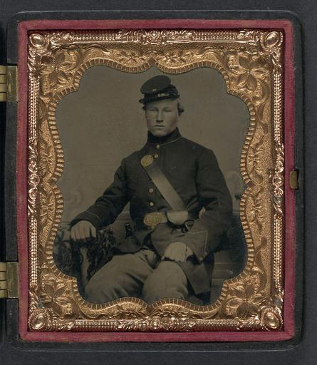 Keywords: library of congress libraryofcongress dc:identifier=http://hdl.loc.gov/loc.pnp/ppmsca.27025 dc:identifier=httphdllocgovlocpnpppmsca27025 xmlns:dc=http://purl.org/dc/elements/1.1/ xmlns:dc=httppurlorgdcelements11 people picture frame photo border [Unidentified soldier in Union uniform and 28th Regiment forage cap with cap box] [between 1861 and 1865] 1 photograph : sixth-plate tintype, hand-colored ; 9.5 x 8.4 cm (case) Notes: Title devised by Library staff. Case: Berg, no. 1-58. Gift; Tom Liljenquist; 2010; (DLC/PP-2010:105). Subjects: Soldiers--Union--1860-1870. Military uniforms--Union--1860-1870. United States--History--Civil War, 1861-1865--Military personnel--Union. Format: Portrait photographs--1860-1870. Tintypes--Hand-colored--1860-1870. Rights Info: No known restrictions on publication. Repository: Library of Congress, Prints and Photographs Division, Washington, D.C. 20540 USA, hdl.loc.gov/loc.pnp/pp.print Part Of: Ambrotype/Tintype filing series (Library of Congress) (DLC) 2010650518 Liljenquist Family collection (Library of Congress) (DLC) 2010650519 More information about this collection is available at hdl.loc.gov/loc.pnp/pp.lilj Persistent URL: hdl.loc.gov/loc.pnp/ppmsca.27025 Call Number: AMB/TIN no. 2170 [Unidentified soldier in Union uniform and 28th Regiment forage cap with cap box] [between 1861 and 1865] 1 photograph : sixth-plate tintype, hand-colored ; 9.5 x 8.4 cm (case) Notes: Title devised by Library staff. Case: Berg, no. 1-58. Gift; Tom Liljenquist; 2010; (DLC/PP-2010:105). Subjects: Soldiers--Union--1860-1870. Military uniforms--Union--1860-1870. United States--History--Civil War, 1861-1865--Military personnel--Union. Format: Portrait photographs--1860-1870. Tintypes--Hand-colored--1860-1870. Rights Info: No known restrictions on publication. Repository: Library of Congress, Prints and Photographs Division, Washington, D.C. 20540 USA, hdl.loc.gov/loc.pnp/pp.print Part Of: Ambrotype/Tintype filing series (Library of Congress) (DLC) 2010650518 Liljenquist Family collection (Library of Congress) (DLC) 2010650519 More information about this collection is available at hdl.loc.gov/loc.pnp/pp.lilj Persistent URL: hdl.loc.gov/loc.pnp/ppmsca.27025 Call Number: AMB/TIN no. 2170