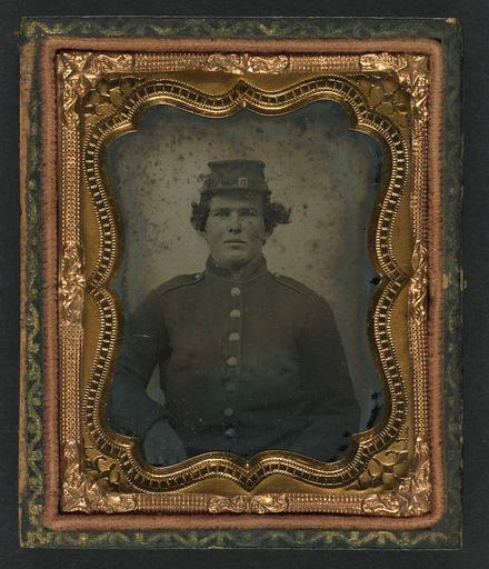 Keywords: library of congress libraryofcongress dc:identifier=http://hdl.loc.gov/loc.pnp/ppmsca.27352 dc:identifier=httphdllocgovlocpnpppmsca27352 xmlns:dc=http://purl.org/dc/elements/1.1/ xmlns:dc=httppurlorgdcelements11 u.s. civil war uscivilwar american civil war americancivilwar the civil war thecivilwar civil war civilwar war between the states warbetweenthestates united states of america unitedstatesofamerica u.s.a. usa the union theunion union the north thenorth yankee yankees soldier picture frame people photo border surreal [Unidentified soldier in Union uniform] [between 1861 and 1865] 1 photograph : ninth-plate ambrotype, hand-colored ; 7.3 x 6.1 cm (case) Notes: Title devised by Library staff. Case: Rinhart, no. 225 variant. Gift; Tom Liljenquist; 2010; (DLC/PP-2010:105). Subjects: United States.--Army--People--1860-1870. Soldiers--Union--1860-1870. Military uniforms--Union--1860-1870. United States--History--Civil War, 1861-1865--Military personnel--Union. Format: Portrait photographs--1860-1870. Ambrotypes--Hand-colored--1860-1870. Rights Info: No known restrictions on publication. Repository: Library of Congress, Prints and Photographs Division, Washington, D.C. 20540 USA, hdl.loc.gov/loc.pnp/pp.print Part Of: Ambrotype/Tintype filing series (Library of Congress) (DLC) 2010650518 Liljenquist Family collection (Library of Congress) (DLC) 2010650519 More information about this collection is available at hdl.loc.gov/loc.pnp/pp.lilj Persistent URL: hdl.loc.gov/loc.pnp/ppmsca.27352 Call Number: AMB/TIN no. 2487 [Unidentified soldier in Union uniform] [between 1861 and 1865] 1 photograph : ninth-plate ambrotype, hand-colored ; 7.3 x 6.1 cm (case) Notes: Title devised by Library staff. Case: Rinhart, no. 225 variant. Gift; Tom Liljenquist; 2010; (DLC/PP-2010:105). Subjects: United States.--Army--People--1860-1870. Soldiers--Union--1860-1870. Military uniforms--Union--1860-1870. United States--History--Civil War, 1861-1865--Military personnel--Union. Format: Portrait photographs--1860-1870. Ambrotypes--Hand-colored--1860-1870. Rights Info: No known restrictions on publication. Repository: Library of Congress, Prints and Photographs Division, Washington, D.C. 20540 USA, hdl.loc.gov/loc.pnp/pp.print Part Of: Ambrotype/Tintype filing series (Library of Congress) (DLC) 2010650518 Liljenquist Family collection (Library of Congress) (DLC) 2010650519 More information about this collection is available at hdl.loc.gov/loc.pnp/pp.lilj Persistent URL: hdl.loc.gov/loc.pnp/ppmsca.27352 Call Number: AMB/TIN no. 2487 |