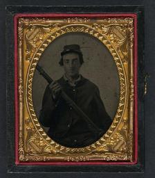 Keywords: library of congress libraryofcongress dc:identifier=http://hdl.loc.gov/loc.pnp/ppmsca.27350 dc:identifier=httphdllocgovlocpnpppmsca27350 xmlns:dc=http://purl.org/dc/elements/1.1/ xmlns:dc=httppurlorgdcelements11 u.s. civil war uscivilwar american civil war americancivilwar the civil war thecivilwar civil war civilwar war between the states warbetweenthestates united states of america unitedstatesofamerica u.s.a. usa the union theunion union the north thenorth yankee yankees soldier gun musket people picture frame photo border [Unidentified soldier in Union uniform with musket] [between 1861 and 1865] 1 photograph : ninth-plate tintype, hand-colored ; 7.3 x 6.1 cm (case) Notes: Title devised by Library staff. Case: Leather geometric. Gift; Tom Liljenquist; 2010; (DLC/PP-2010:105). Subjects: United States.--Army--People--1860-1870. Soldiers--Union--1860-1870. Military uniforms--Union--1860-1870. United States--History--Civil War, 1861-1865--Military personnel--Union. Format: Portrait photographs--1860-1870. Tintypes--Hand-colored--1860-1870. Rights Info: No known restrictions on publication. Repository: Library of Congress, Prints and Photographs Division, Washington, D.C. 20540 USA, hdl.loc.gov/loc.pnp/pp.print Part Of: Ambrotype/Tintype filing series (Library of Congress) (DLC) 2010650518 Liljenquist Family collection (Library of Congress) (DLC) 2010650519 More information about this collection is available at hdl.loc.gov/loc.pnp/pp.lilj Persistent URL: hdl.loc.gov/loc.pnp/ppmsca.27350 Call Number: AMB/TIN no. 2485 [Unidentified soldier in Union uniform with musket] [between 1861 and 1865] 1 photograph : ninth-plate tintype, hand-colored ; 7.3 x 6.1 cm (case) Notes: Title devised by Library staff. Case: Leather geometric. Gift; Tom Liljenquist; 2010; (DLC/PP-2010:105). Subjects: United States.--Army--People--1860-1870. Soldiers--Union--1860-1870. Military uniforms--Union--1860-1870. United States--History--Civil War, 1861-1865--Military personnel--Union. Format: Portrait photographs--1860-1870. Tintypes--Hand-colored--1860-1870. Rights Info: No known restrictions on publication. Repository: Library of Congress, Prints and Photographs Division, Washington, D.C. 20540 USA, hdl.loc.gov/loc.pnp/pp.print Part Of: Ambrotype/Tintype filing series (Library of Congress) (DLC) 2010650518 Liljenquist Family collection (Library of Congress) (DLC) 2010650519 More information about this collection is available at hdl.loc.gov/loc.pnp/pp.lilj Persistent URL: hdl.loc.gov/loc.pnp/ppmsca.27350 Call Number: AMB/TIN no. 2485 |