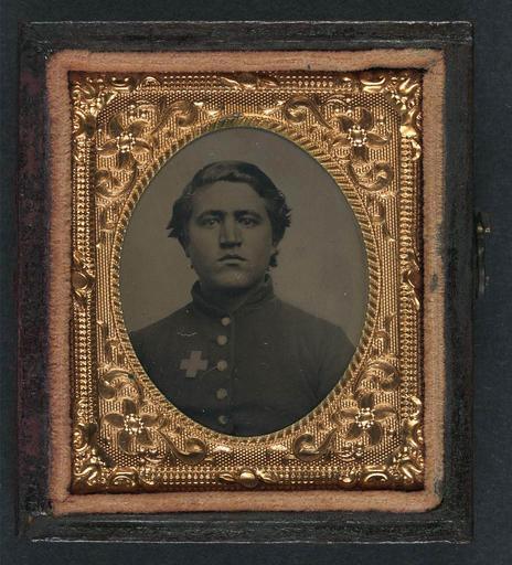 Keywords: library of congress libraryofcongress dc:identifier=http://hdl.loc.gov/loc.pnp/ppmsca.27495 dc:identifier=httphdllocgovlocpnpppmsca27495 xmlns:dc=http://purl.org/dc/elements/1.1/ xmlns:dc=httppurlorgdcelements11 u.s. civil war uscivilwar american civil war americancivilwar the civil war thecivilwar civil war civilwar war between the states warbetweenthestates united states of america unitedstatesofamerica u.s.a. usa the union theunion union the north thenorth yankee yankees soldier badge army of the potomac armyofthepotomac 6th corps 6thcorps picture frame people photo border [Unidentified soldier in Union uniform with 6th Corps of the Army of the Potomac badge] [between 1861 and 1865] 1 photograph : sixteenth-plate tintype, hand-colored ; 5.2 x 4.5 cm (case) Notes: Title devised by Library staff. Case: Leather geometric scroll design. Gift; Tom Liljenquist; 2010; (DLC/PP-2010:105). Subjects: United States.--Army of the Potomac.--Corps, 6th (1862-1865)--People. Soldiers--Union--1860-1870. Military uniforms--Union--1860-1870. United States--History--Civil War, 1861-1865--Military personnel--Union. Format: Portrait photographs--1860-1870. Tintypes--Hand-colored--1860-1870. Rights Info: No known restrictions on publication. Repository: Library of Congress, Prints and Photographs Division, Washington, D.C. 20540 USA, hdl.loc.gov/loc.pnp/pp.print Part Of: Ambrotype/Tintype filing series (Library of Congress) (DLC) 2010650518 Liljenquist Family collection (Library of Congress) (DLC) 2010650519 More information about this collection is available at hdl.loc.gov/loc.pnp/pp.lilj Persistent URL: hdl.loc.gov/loc.pnp/ppmsca.27495 Call Number: AMB/TIN no. 2614 [Unidentified soldier in Union uniform with 6th Corps of the Army of the Potomac badge] [between 1861 and 1865] 1 photograph : sixteenth-plate tintype, hand-colored ; 5.2 x 4.5 cm (case) Notes: Title devised by Library staff. Case: Leather geometric scroll design. Gift; Tom Liljenquist; 2010; (DLC/PP-2010:105). Subjects: United States.--Army of the Potomac.--Corps, 6th (1862-1865)--People. Soldiers--Union--1860-1870. Military uniforms--Union--1860-1870. United States--History--Civil War, 1861-1865--Military personnel--Union. Format: Portrait photographs--1860-1870. Tintypes--Hand-colored--1860-1870. Rights Info: No known restrictions on publication. Repository: Library of Congress, Prints and Photographs Division, Washington, D.C. 20540 USA, hdl.loc.gov/loc.pnp/pp.print Part Of: Ambrotype/Tintype filing series (Library of Congress) (DLC) 2010650518 Liljenquist Family collection (Library of Congress) (DLC) 2010650519 More information about this collection is available at hdl.loc.gov/loc.pnp/pp.lilj Persistent URL: hdl.loc.gov/loc.pnp/ppmsca.27495 Call Number: AMB/TIN no. 2614 |