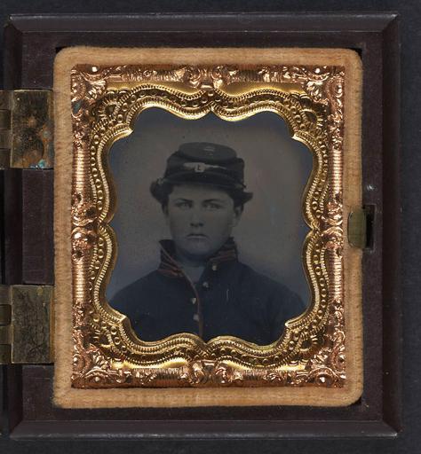 | Keywords: library of congress libraryofcongress dc:identifier=http://hdl.loc.gov/loc.pnp/ppmsca.27464 dc:identifier=httphdllocgovlocpnpppmsca27464 xmlns:dc=http://purl.org/dc/elements/1.1/ xmlns:dc=httppurlorgdcelements11 picture frame people photo border [Unidentified soldier in Union uniform with red artillery piping and Company D forage cap]  [between 1861 and 1865]  1 photograph : sixteenth-plate tintype, hand-colored ; 5.6 x 5.2 cm (case)  Notes:  Title devised by Library staff. Case: Berg, no. 3-480. Gift; Tom Liljenquist; 2010; (DLC/PP-2010:105).  Subjects:  United States.--Army.--People--1860-1870. Soldiers--Union--1860-1870. Military uniforms--Union--1860-1870. United States--History--Civil War, 1861-1865--Military personnel--Union.  Format:  Portrait photographs--1860-1870. Tintypes--Hand-colored--1860-1870.  Rights Info:  No known restrictions on publication.  Repository:  Library of Congress, Prints and Photographs Division, Washington, D.C. 20540 USA, hdl.loc.gov/loc.pnp/pp.print  Part Of:  Ambrotype/Tintype filing series (Library of Congress) (DLC)   2010650518 Liljenquist Family collection (Library of Congress) (DLC)   2010650519  More information about this collection is available at hdl.loc.gov/loc.pnp/pp.lilj  Persistent URL:  hdl.loc.gov/loc.pnp/ppmsca.27464  Call Number:  AMB/TIN no. 2591   [Unidentified soldier in Union uniform with red artillery piping and Company D forage cap]  [between 1861 and 1865]  1 photograph : sixteenth-plate tintype, hand-colored ; 5.6 x 5.2 cm (case)  Notes:  Title devised by Library staff. Case: Berg, no. 3-480. Gift; Tom Liljenquist; 2010; (DLC/PP-2010:105).  Subjects:  United States.--Army.--People--1860-1870. Soldiers--Union--1860-1870. Military uniforms--Union--1860-1870. United States--History--Civil War, 1861-1865--Military personnel--Union.  Format:  Portrait photographs--1860-1870. Tintypes--Hand-colored--1860-1870.  Rights Info:  No known restrictions on publication.  Repository:  Library of Congress, Prints and Photographs Division, Washington, D.C. 20540 USA, hdl.loc.gov/loc.pnp/pp.print  Part Of:  Ambrotype/Tintype filing series (Library of Congress) (DLC)   2010650518 Liljenquist Family collection (Library of Congress) (DLC)   2010650519  More information about this collection is available at hdl.loc.gov/loc.pnp/pp.lilj  Persistent URL:  hdl.loc.gov/loc.pnp/ppmsca.27464  Call Number:  AMB/TIN no. 2591    |