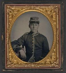 Keywords: library of congress libraryofcongress dc:identifier=http://hdl.loc.gov/loc.pnp/ppmsca.26900 dc:identifier=httphdllocgovlocpnpppmsca26900 xmlns:dc=http://purl.org/dc/elements/1.1/ xmlns:dc=httppurlorgdcelements11 u.s. civil war uscivilwar american civil war americancivilwar the civil war thecivilwar civil war civilwar war between the states warbetweenthestates united states of america unitedstatesofamerica u.s.a. usa the union theunion union the north thenorth yankee yankees soldier zouaves zouave union zouave unionzouave new york zouaves newyorkzouaves soldiersnpm people picture frame photo border [Unidentified young soldier in New York Zouave uniform] [between 1861 and 1865] 1 photograph : sixth-plate ambrotype, hand-colored ; 9.1 x 8.4 cm (case) Notes: Title devised by Library staff. Case: Leather geometric scroll and flower motif. Gift; Tom Liljenquist; 2010; (DLC/PP-2010:105). Subjects: United States.--Army--People--1860-1870. Soldiers--Union--1860-1870. Military uniforms--Union--1860-1870. Zouaves--1860-1870. Youth--1860-1870. United States--History--Civil War, 1861-1865--Military personnel--Union. Format: Portrait photographs--1860-1870. Ambrotypes--Hand-colored--1860-1870. Rights Info: No known restrictions on publication. Repository: Library of Congress, Prints and Photographs Division, Washington, D.C. 20540 USA, hdl.loc.gov/loc.pnp/pp.print Part Of: Ambrotype/Tintype filing series (Library of Congress) (DLC) 2010650518 Liljenquist Family collection (Library of Congress) (DLC) 2010650519 More information about this collection is available at hdl.loc.gov/loc.pnp/pp.lilj Persistent URL: hdl.loc.gov/loc.pnp/ppmsca.26900 Call Number: AMB/TIN no. 2047 [Unidentified young soldier in New York Zouave uniform] [between 1861 and 1865] 1 photograph : sixth-plate ambrotype, hand-colored ; 9.1 x 8.4 cm (case) Notes: Title devised by Library staff. Case: Leather geometric scroll and flower motif. Gift; Tom Liljenquist; 2010; (DLC/PP-2010:105). Subjects: United States.--Army--People--1860-1870. Soldiers--Union--1860-1870. Military uniforms--Union--1860-1870. Zouaves--1860-1870. Youth--1860-1870. United States--History--Civil War, 1861-1865--Military personnel--Union. Format: Portrait photographs--1860-1870. Ambrotypes--Hand-colored--1860-1870. Rights Info: No known restrictions on publication. Repository: Library of Congress, Prints and Photographs Division, Washington, D.C. 20540 USA, hdl.loc.gov/loc.pnp/pp.print Part Of: Ambrotype/Tintype filing series (Library of Congress) (DLC) 2010650518 Liljenquist Family collection (Library of Congress) (DLC) 2010650519 More information about this collection is available at hdl.loc.gov/loc.pnp/pp.lilj Persistent URL: hdl.loc.gov/loc.pnp/ppmsca.26900 Call Number: AMB/TIN no. 2047 |