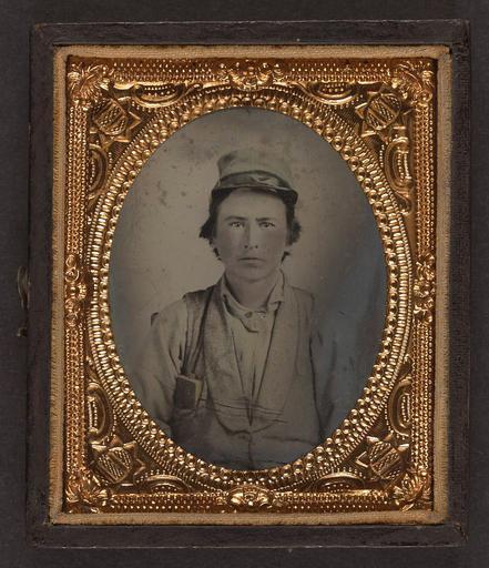 | Keywords: library of congress libraryofcongress dc:identifier=http://hdl.loc.gov/loc.pnp/ppmsca.27173 dc:identifier=httphdllocgovlocpnpppmsca27173 xmlns:dc=http://purl.org/dc/elements/1.1/ xmlns:dc=httppurlorgdcelements11 people picture frame photo border [Unidentified young soldier in kepi and vest] [between 1861 and 1865] 1 photograph : ninth-plate tintype, hand-colored ; 7.4 x 6.2 cm (case) Notes: Title devised by Library staff. Case: Leather ornate cross design. Photograph shows book, probably a bible, in vest pocket. Gift; Tom Liljenquist; 2010; (DLC/PP-2010:105). Subjects: Soldiers--Confederate--1860-1870. Military uniforms--Confederate--1860-1870. Youth--1860-1870. Books--1860-1870. United States--History--Civil War, 1861-1865--Military personnel--Confederate. Format: Portrait photographs--1860-1870. Tintypes--Hand-colored--1860-1870. Rights Info: No known restrictions on publication. Repository: Library of Congress, Prints and Photographs Division, Washington, D.C. 20540 USA, hdl.loc.gov/loc.pnp/pp.print Part Of: Ambrotype/Tintype filing series (Library of Congress) (DLC) 2010650518 Liljenquist Family collection (Library of Congress) (DLC) 2010650519 More information about this collection is available at hdl.loc.gov/loc.pnp/pp.lilj Persistent URL: hdl.loc.gov/loc.pnp/ppmsca.27173 Call Number: AMB/TIN no. 2320 [Unidentified young soldier in kepi and vest] [between 1861 and 1865] 1 photograph : ninth-plate tintype, hand-colored ; 7.4 x 6.2 cm (case) Notes: Title devised by Library staff. Case: Leather ornate cross design. Photograph shows book, probably a bible, in vest pocket. Gift; Tom Liljenquist; 2010; (DLC/PP-2010:105). Subjects: Soldiers--Confederate--1860-1870. Military uniforms--Confederate--1860-1870. Youth--1860-1870. Books--1860-1870. United States--History--Civil War, 1861-1865--Military personnel--Confederate. Format: Portrait photographs--1860-1870. Tintypes--Hand-colored--1860-1870. Rights Info: No known restrictions on publication. Repository: Library of Congress, Prints and Photographs Division, Washington, D.C. 20540 USA, hdl.loc.gov/loc.pnp/pp.print Part Of: Ambrotype/Tintype filing series (Library of Congress) (DLC) 2010650518 Liljenquist Family collection (Library of Congress) (DLC) 2010650519 More information about this collection is available at hdl.loc.gov/loc.pnp/pp.lilj Persistent URL: hdl.loc.gov/loc.pnp/ppmsca.27173 Call Number: AMB/TIN no. 2320 |