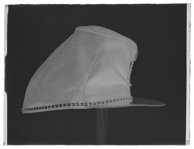 | Keywords: Uniformsmössa, ca 1840-50, för Livregementets dragoner - Livrustkammaren - 27841-negative.tif LSH artwork sv Mössa av blått kläde hög framåtlutande avsmalnande uppåt med liten kulle Rak skärm av svart läder Kring nedre kanten och mellan kokard och knapp beläggningssnöre av blått silke och guld Kokard av gult silke och regementsknapp i guld liten modell Foder av kyprat svart siden Svettrem av rödbrunt skinn h 35 mm <br/>Anm Tyget något slitet samt skärmen delvis lös <br/>Mössan ligger i brun pappask med lock På locket etikett från Militärekiperings AB original caption g 100 size mm 180 270 ca LRK Gustav hertig av Uppland place of origin original filename LN_E00339 47667 inventory number LRK 11286 27841 CC0 Uniformsmössa ca 1840-50 för Livregementets dragoner - Livrustkammaren - 27841 tif <gallery caption Related objects > File Stövel krökstövel - Livrustkammaren - 34731 tif LRK 27406 </gallery> |