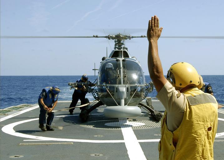 Keywords: UNITAS Gold DVIDS168735.jpg en 1/Er Miestre Jesus Espinosa Santiago guides a Bolkow BO-105 helicopter to land on the flight deck of the Mexican navy ocean patrol ship ARM Oaxaca Oaxaca is participating in exercise UNITAS Gold an annual multi-national exercise to train maritime forces and promote maritime security and stability in the region Participating nations include Brazil Canada Chile Colombia Ecuador Germany Mexico Peru the United States and Uruguay 2009-04-26 Petty Officer 2nd Class Brandon Shelander https //www dvidshub net/image/168735 090426-N-+++++-451 2009-04-29 18 27 ARM OAXACA PD-USGov-Military-Navy UNITAS 50-09 Images from DoD uploaded by Fæ |