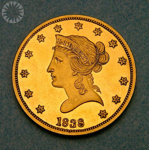 Keywords: legendary coins legendarycoins numismatics money smithsonian probably public domain probablypublicdomain round circle indoor SI Neg. 2005-27296. Date: 9/1/2005...The gold British sovereigns that James Smithson bequeathed to the United States were melted down and re-struck as American coins. Some of the gold went into the reissue of the ten-dollar piece, or eagle. There were other factors at work, of course, including two Acts of Congress that reduced the weight and fineness of all United States gold coins, in an effort to keep them in circulation. .The resumption of eagle coinage was ordered in July 1838, and between seven and eight thousand of the coins, the first eagles struck since 1804, were minted at the beginning of December. Smithson's legacy played a role: the knowledge that a massive amount of bullion was on its way across the Atlantic fostered the decision to resume the eagle, the largest existing American denomination. .Christian Gobrecht was responsible for the designs on the resumed eagle coinage. His left-facing Liberty sported a coronet (there is a copper cent, also by Gobrecht, with a nearly identical arrangement), while the rounded tip of the truncation points to the "1" in the date. .A simple eagle with shield appears on the reverse. The obverse design was modified slightly in 1839, the truncation now being centered above the date. A handful of proofs, specimen coins of record or for VIPs, was also struck. Three have been reliably reported, and a fourth is rumored..Click here to view the obverse...Credit: Tom Mulvaney (Smithsonian Institution) SI Neg. 2005-27296. Date: 9/1/2005...The gold British sovereigns that James Smithson bequeathed to the United States were melted down and re-struck as American coins. Some of the gold went into the reissue of the ten-dollar piece, or eagle. There were other factors at work, of course, including two Acts of Congress that reduced the weight and fineness of all United States gold coins, in an effort to keep them in circulation. .The resumption of eagle coinage was ordered in July 1838, and between seven and eight thousand of the coins, the first eagles struck since 1804, were minted at the beginning of December. Smithson's legacy played a role: the knowledge that a massive amount of bullion was on its way across the Atlantic fostered the decision to resume the eagle, the largest existing American denomination. .Christian Gobrecht was responsible for the designs on the resumed eagle coinage. His left-facing Liberty sported a coronet (there is a copper cent, also by Gobrecht, with a nearly identical arrangement), while the rounded tip of the truncation points to the "1" in the date. .A simple eagle with shield appears on the reverse. The obverse design was modified slightly in 1839, the truncation now being centered above the date. A handful of proofs, specimen coins of record or for VIPs, was also struck. Three have been reliably reported, and a fourth is rumored..Click here to view the obverse...Credit: Tom Mulvaney (Smithsonian Institution) |