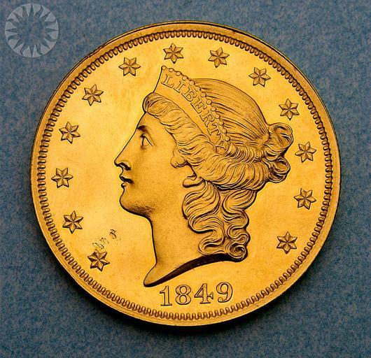 Keywords: legendary coins legendarycoins numismatics money smithsonian probably public domain probablypublicdomain round circle indoor plate SI Neg. 2005-27334. Date: 9/1/2005...The California gold rush quickly gave the United States not one new gold coin, but two: a tiny gold dollar at the lower end of the monetary spectrum, and a large double eagle, or twenty-dollar coin, at the upper end. Why did Americans need more gold denominations? .So much gold was now coming out of California that it was actually lowering the value of that metal against silver. Bullion dealers began buying up silver dollars and half dollars for melting and export, for they were now worth more than face value as bullion. A Congressman from North Carolina had an idea: If gold dollars were struck, to pass at par with the silver ones, it might ease some of the pressure on silver coinage. .His bill was introduced late in January 1849. At the last minute, a provision was added for an entirely new coin, a double eagle. Thus amended, the bill became law on March 3, 1849. The production of gold dollars swung into action fairly quickly, and coinage had gotten under way by early May. .But the double eagles took longer. James B. Longacre, the artist selected to design the new large coin, encountered initial opposition from Mint Officials, and it was late December before the first two pattern double eagles could be struck. One disappeared long ago, leaving this as the only surviving gold pattern from 1849..Click here to view the obverse...Credit: Tom Mulvaney (Smithsonian Institution) SI Neg. 2005-27334. Date: 9/1/2005...The California gold rush quickly gave the United States not one new gold coin, but two: a tiny gold dollar at the lower end of the monetary spectrum, and a large double eagle, or twenty-dollar coin, at the upper end. Why did Americans need more gold denominations? .So much gold was now coming out of California that it was actually lowering the value of that metal against silver. Bullion dealers began buying up silver dollars and half dollars for melting and export, for they were now worth more than face value as bullion. A Congressman from North Carolina had an idea: If gold dollars were struck, to pass at par with the silver ones, it might ease some of the pressure on silver coinage. .His bill was introduced late in January 1849. At the last minute, a provision was added for an entirely new coin, a double eagle. Thus amended, the bill became law on March 3, 1849. The production of gold dollars swung into action fairly quickly, and coinage had gotten under way by early May. .But the double eagles took longer. James B. Longacre, the artist selected to design the new large coin, encountered initial opposition from Mint Officials, and it was late December before the first two pattern double eagles could be struck. One disappeared long ago, leaving this as the only surviving gold pattern from 1849..Click here to view the obverse...Credit: Tom Mulvaney (Smithsonian Institution) |