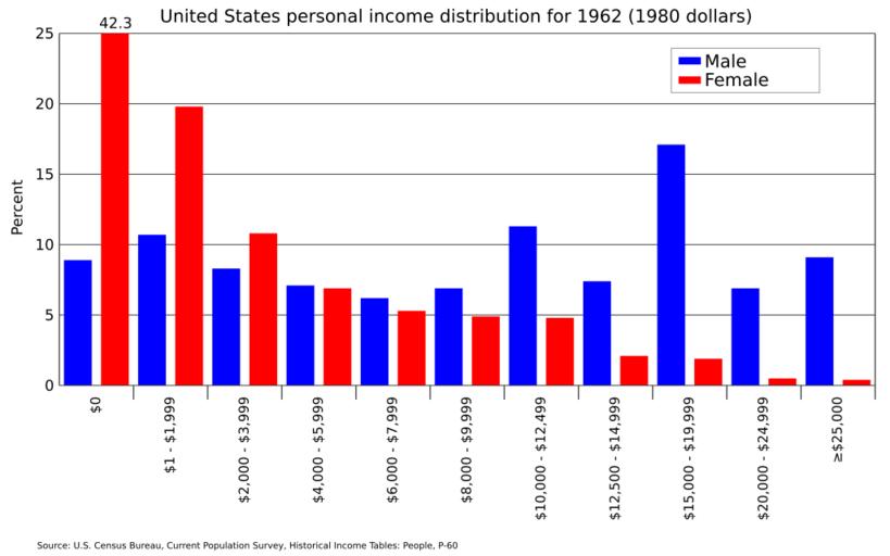 | Keywords: United States personal income by sex in 1980 dollars-1962.svg translate yes en Distribution of personal income by sex in the United States in 1962 in 1980 dollars Source U S Census Bureau Current Population Survey Historical Income People https //www2 census gov/prod2/popscan/p60-132 pdf P-60 Table 44 pgs 138-140 2016-05-05 own Delphi234 other versions Note wikitable - 1980 dollars 2014 dollars - 2 000 5 746 - 4 000 11 492 - 6 000 17 238 - 8 000 22 984 - 10 000 28 730 - 12 500 35 913 - 15 000 43 095 - 20 000 57 460 - 25 000 71 825 cc-zero Income distribution in the United States Personal income in the United States |