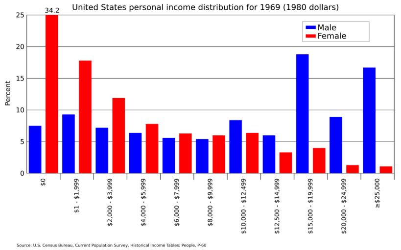 | Keywords: United States personal income by sex in 1980 dollars-1969.svg translate yes en Distribution of personal income by sex in the United States in 1969 in 1980 dollars Source U S Census Bureau Current Population Survey Historical Income People https //www2 census gov/prod2/popscan/p60-132 pdf P-60 Table 44 pgs 138-140 2016-05-05 own Delphi234 other versions Note wikitable - 1980 dollars 2014 dollars - 2 000 5 746 - 4 000 11 492 - 6 000 17 238 - 8 000 22 984 - 10 000 28 730 - 12 500 35 913 - 15 000 43 095 - 20 000 57 460 - 25 000 71 825 cc-zero Income distribution in the United States Personal income in the United States |