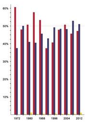 Keywords: United States presidential election results bar graph.png Key FFD900 Libertarian Party 1px AAAAAA solid 3C3B6E Democratic Party 1px AAAAAA solid B22234 Republican Party 1px AAAAAA solid Note Although the Libertarian Party was on the ballot in all fifty United States plus D C in 2000 the Libertarian Party of Arizona due to a conflict with the national party opted to place L Neil Smith on the ballot in place of the national party's nominee Harry Browne The 5 775 votes received by Smith are included in the party's 2000 total own 22 March 2016 allixpeeke 350px Expanded bar graph 175px Line graph 175px Expanded line graph Cc-zero United States presidential election statistics United States presidential election 1972 United States presidential election 1976 United States presidential election 1980 United States presidential election 1984 United States presidential election 1988 United States presidential election 1992 United States presidential election 1996 United States presidential election 2000 United States presidential election 2004 United States presidential election 2008 Libertarian Party presidential graphs United States Libertarian Party 1972 presidential campaign United States Libertarian Party 1976 presidential campaign United States Libertarian Party 1980 presidential campaign United States Libertarian Party 1984 presidential campaign United States Libertarian Party 1988 presidential campaign United States Libertarian Party 1992 presidential campaign United States Libertarian Party 1996 presidential campaign United States Libertarian Party 2000 presidential campaign United States Libertarian Party 2004 presidential campaign United States Libertarian Party 2008 presidential campaign United States Libertarian Party 2012 presidential campaign United States Democratic Party presidential graphs United States United States Democratic Party 1972 presidential campaign United States Democratic Party 1976 presidential campaign United States Democratic Party 1980 presidential campaign United States Democratic Party 1984 presidential campaign United States Democratic Party 1988 presidential campaign United States Democratic Party 1992 presidential campaign United States Democratic Party 1996 presidential campaign Al Gore presidential campaign 2000 United States Democratic Party 2004 presidential campaign United States Democratic Party 2008 presidential campaign United States Democratic Party 2012 presidential campaign Republican Party presidential graphs United States United States Republican Party 1972 presidential campaign United States Republican Party 1976 presidential campaign United States Republican Party 1980 presidential campaign United States Republican Party 1984 presidential campaign United States Republican Party 1988 presidential campaign United States Republican Party 1992 presidential campaign United States Republican Party 1996 presidential campaign George W Bush presidential campaign 2000 George W Bush presidential campaign 2004 United States Republican Party 2008 presidential campaign United States Republican Party 2012 presidential campaign Political bar charts Electoral timelines of the United States of America Gary Johnson graphs |