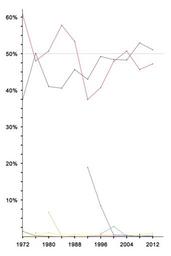 Keywords: United States presidential election results line graph (Expanded).png Key FFD900 Libertarian Party 1px AAAAAA solid 3C3B6E Democratic Party 1px AAAAAA solid B22234 Republican Party 1px AAAAAA solid 884200 American Independent Party 1px AAAAAA solid 827C1D Eugene J McCarthy 1px AAAAAA solid BDB159 National Unity Party John B Anderson 1px AAAAAA solid 6B47AA Ross Perot/Reform Party of the United States of America 1px AAAAAA solid AB37C8 Constitution Party United States 1px AAAAAA solid 27C851 Greens/Green Party USA/Green Party of the United States 1px AAAAAA solid 000000 Ralph Nader other 1px AAAAAA solid Notes <p>Although John B Anderson ultimately declined to run in 1984 the National Unity Party of Kentucky nevertheless placed him on the ballot <p>Although Ross Perot had not yet formed the Reform Party of the United States of America in 1992 his 1992 run is nevertheless displayed above as a Reform Party run <p>Although the Libertarian Party was on the ballot in all fifty United States plus D C in 2000 the Libertarian Party of Arizona due to a conflict with the national party opted to place L Neil Smith on the ballot in place of the national party's nominee Harry Browne The 5 775 votes received by Smith are included in the party's 2000 total <p>The Green Party that nominated candidates for the presidency in 1996 and 2000 was the Greens/Green Party USA The Green Party that nominated candidates for the presidency ever since has been the Green Party of the United States <p>Although Ron Paul did not run in the general elections of 2008 or 2012 supporters nevertheless got his name on the ballot in some states and got him write-in access in others Ron Paul was also the Libertarian Party nominee in 1988 alexpeak com 22 March 2016 allixpeeke 200px Bar graph 350px Expanded bar graph 175px Line graph Cc-zero Category American Independent Party presidential graphs United States presidential election statistics United States presidential election 1972 United States presidential election 1976 United States presidential election 1980 United States presidential election 1984 United States presidential election 1988 United States presidential election 1992 United States presidential election 1996 United States presidential election 2000 United States presidential election 2004 United States presidential election 2008 Libertarian Party presidential graphs United States Libertarian Party 1972 presidential campaign United States Libertarian Party 1976 presidential campaign United States Libertarian Party 1980 presidential campaign United States Libertarian Party 1984 presidential campaign United States Libertarian Party 1988 presidential campaign United States Libertarian Party 1992 presidential campaign United States Libertarian Party 1996 presidential campaign United States Libertarian Party 2000 presidential campaign United States Libertarian Party 2004 presidential campaign United States Libertarian Party 2008 presidential campaign United States Libertarian Party 2012 presidential campaign United States Democratic Party presidential graphs United States United States Democratic Party 1972 presidential campaign United States Democratic Party 1976 presidential campaign United States Democratic Party 1980 presidential campaign United States Democratic Party 1984 presidential campaign United States Democratic Party 1988 presidential campaign United States Democratic Party 1992 presidential campaign United States Democratic Party 1996 presidential campaign Al Gore presidential campaign 2000 United States Democratic Party 2004 presidential campaign United States Democratic Party 2008 presidential campaign United States Democratic Party 2012 presidential campaign Republican Party presidential graphs United States United States Republican Party 1972 presidential campaign United States Republican Party 1976 presidential campaign United States Republican Party 1980 presidential campaign United States Republican Party 1984 presidential campaign United States Republican Party 1988 presidential campaign United States Republican Party 1992 presidential campaign United States Republican Party 1996 presidential campaign George W Bush presidential campaign 2000 George W Bush presidential campaign 2004 United States Republican Party 2008 presidential campaign United States Republican Party 2012 presidential campaign Green Party of the United States presidential graphs Greens/Green Party USA 1996 presidential campaign Greens/Green Party USA 2000 presidential campaign Green Party of the United States 2004 presidential campaign Green Party of the United States 2008 presidential campaign Green Party of the United States 2012 presidential campaign Constitution Party presidential graphs United States U S Taxpayers Party 1992 presidential campaign U S Taxpayers Party 1996 presidential campaign Constitution Party 2000 presidential campaign United States Constitution Party 2004 presidential campaign United States Constitution Party 2008 presidential campaign United States Constitution Party 2012 presidential campaign United States Ralph Nader graphs Ralph Nader presidential campaign 2008 Reform Party of the United States of America presidential graphs Ross Perot presidential campaign 1992 Reform Party of the United States of America 1996 presidential campaign Reform Party of the United States of America 2000 presidential campaign Reform Party of the United States of America 2004 presidential campaign Reform Party of the United States of America 2008 presidential campaign Reform Party of the United States of America 2012 presidential campaign National Unity Party presidential graphs United States Eugene McCarthy presidential graphs Political line charts Electoral timelines of the United States of America Dot charts Gary Johnson graphs |