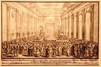 Keywords: University opening ceremony in the state room of Buda palace, 25 June 1780.jpg Artwork Jacob Mathias Schmutzer 1733 - 1811 LangSwitch Woodcut on paper Master copy Fametszet nemesmásolat 1780 accession number object history credit line Photo by Szilas in the Budapest Historical Museum PD-old-100 Commonist Collections of the Budapest Historical Museum Buda Castle in art |
