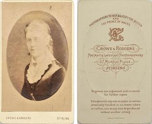 Keywords: crowe and rodgers croweandrodgers stirling crowe & rodgers crowerodgers scotland 57 murray place 57murrayplace cdv carte de visite cartedevisite scottish public domain publicdomain indoor One of 140 images from a fascinating album. For more information see the full set From 26-28 February I will be in the Truprint Photography Gallery at the Who Do You Think You Are? Live event at London's Olympia. In the run up to that event, and with the help of show visitors over the three days, my aim is to use this album as an example of how Flickr, and the wider web community, can help identify these mystery, orphaned photograhs. Just how many of these images can we identify, and what can we find out about the people they portray? One of 140 images from a fascinating album. For more information see the full set From 26-28 February I will be in the Truprint Photography Gallery at the Who Do You Think You Are? Live event at London's Olympia. In the run up to that event, and with the help of show visitors over the three days, my aim is to use this album as an example of how Flickr, and the wider web community, can help identify these mystery, orphaned photograhs. Just how many of these images can we identify, and what can we find out about the people they portray?