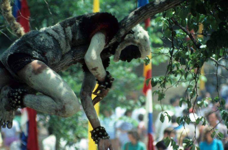 Keywords: smithsonian institution smithsonianinstitution monkey bahrupiya hunuan monkeygod india folklife festival tree climber treeclimber monket man branch costume paint flags ring animal parade center for folklife and cultural heritage centerforfolklifeandculturalheritage Description: A man dressed as a monkey, or bahrupiya, impersonates the monkey god Hanuman in the India program at the 1985 Festival of American Folklife on the National Mall. Creator/Photographer: Daphne Shuttleworth Medium: Medium unknown Culture: Indian Geography: USA Date: 1985 Repository: Center for Folklife and Cultural Heritage/Ralph Rinzler Folklife Archives and Collections Accession number: FAF1985_Shuttleworth_India_013 Description: A man dressed as a monkey, or bahrupiya, impersonates the monkey god Hanuman in the India program at the 1985 Festival of American Folklife on the National Mall. Creator/Photographer: Daphne Shuttleworth Medium: Medium unknown Culture: Indian Geography: USA Date: 1985 Repository: Center for Folklife and Cultural Heritage/Ralph Rinzler Folklife Archives and Collections Accession number: FAF1985_Shuttleworth_India_013 |