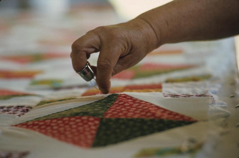 | Keywords: smithsonian institution smithsonianinstitution quilt hand thimble sewing american folklife festival craft mid-20th century mid20thcentury 1968 color fabric piecing fabricpiecing quilt making quiltmaking quilting center for folklife and cultural heritage centerforfolklifeandculturalheritage Description: A participant works on a quilt at the 1968 Festival of American Folklife held on the National Mall, Washington, D.C. Creator/Photographer: Unidentified photographer Medium: Medium unknown Culture: American Geography: USA Date: 1968 Repository: Center for Folklife and Cultural Heritage/Ralph Rinzler Folklife Archives and Collections Accession number: FAF1968_quilter_023 Description: A participant works on a quilt at the 1968 Festival of American Folklife held on the National Mall, Washington, D.C. Creator/Photographer: Unidentified photographer Medium: Medium unknown Culture: American Geography: USA Date: 1968 Repository: Center for Folklife and Cultural Heritage/Ralph Rinzler Folklife Archives and Collections Accession number: FAF1968_quilter_023 |