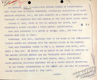| Keywords: doolittle raid doolittleraid united press wire service unitedpresswireservice 1942 world war two worldwartwo text document writing Photo of a document from the 1942 United Press Wire Service Dispatches Special Collection. Repository: San Diego Air and Space Museum Archive Photo of a document from the 1942 United Press Wire Service Dispatches Special Collection. Repository: San Diego Air and Space Museum Archive | ||||