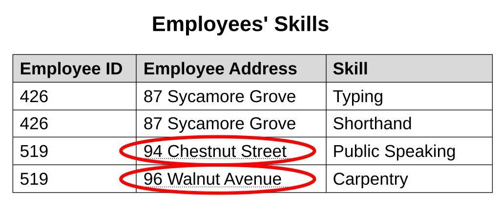 Keywords: Update anomaly.svg Example of a relational database table that suffers from an update anomaly own based on File Update anomaly png Nabav own en wikipedia Nabav Databases Abstract algebra Relations mathematics