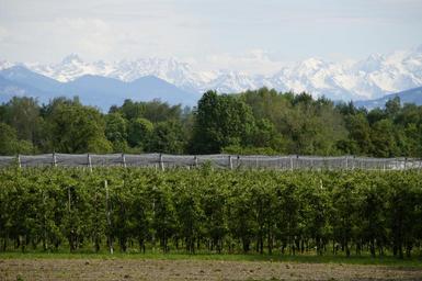 Keywords: upper swabia fruit growing apple trees agriculture mountains alpine panorama landscape vision good view spring