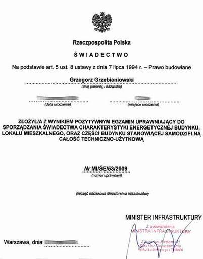 | Keywords: Upr CE.jpg from User Powerek38 Basically the Polish Construction Act Prawo budowlane requires each building to have a special document which can be called in English the Energy Certificate as far as I know it states how much energy this building uses etc This file is a specimen of a licence for an auditor who having obtained such a licence can issue the Energy Certificates pl Wzór uprawnień Certyfikatora Energetycznego own Energia-audyt 2009-09-13 Check categories 2009 November 17 pl wikipedia Certyfikator_energetyczny Architecture 3 Documents of Poland |