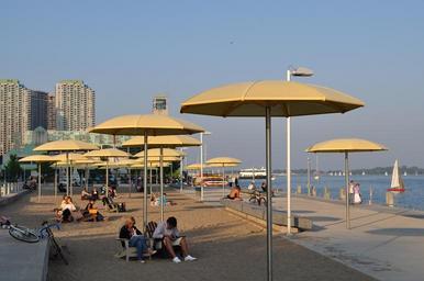 Keywords: urban beach toronto quay park water city sea pier umbrellas canada hto cityscape scenic outdoor recreation