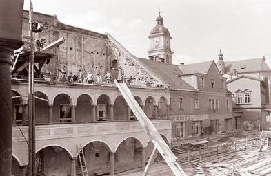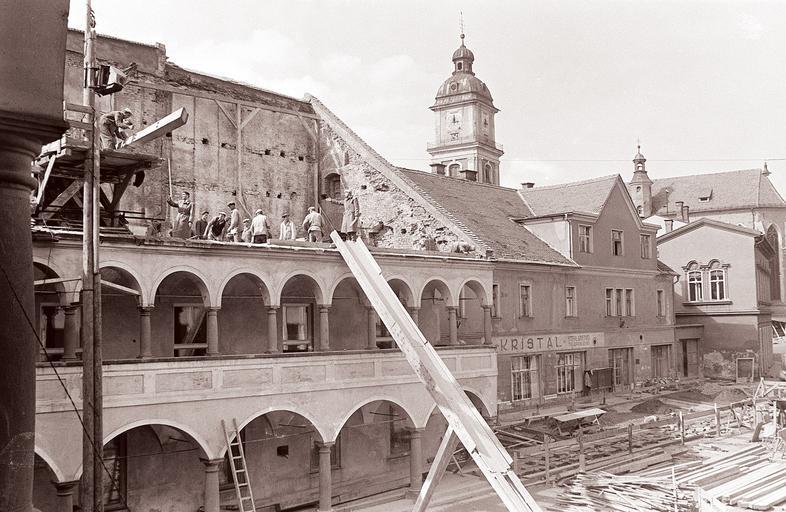 Keywords: Urejanje Rotovškega trga 1960 (2).jpg Urejanje Rotovškega trga 192212 1960-03-22 creator Jože Gal PD-Slovenia 1960 in Slovenia Historical black and white photographs of Maribor Historical images of Maribor Cathedral Town Hall Square Maribor Construction in Maribor Men at work in Maribor Ladders in Slovenia Arcades in Maribor Photographs by Jože Gal |