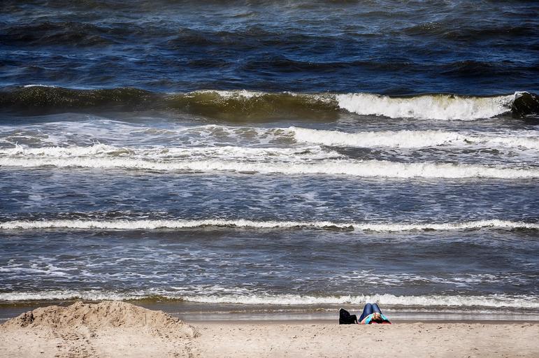 Keywords: urlauberin person beach rest mood sea water wave holiday sleep relax woman