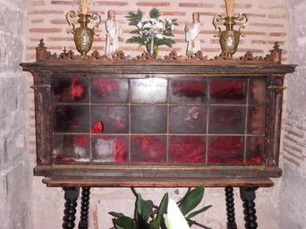 Keywords: UrnaPastor.JPG en Glass coffin of the shepherd who found the Soterraña Virgin inside of the church es Urna funeraria donde reposan los restos del pastor que encontró la imagen de la virgen Soterraña en el interior de la iglesia own Osado 2009 Church of Santa María la Real de Nieva Coffins Church tombs in Spain |