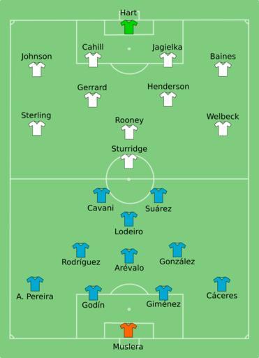 | Keywords: URU-ENG 2014-06-19.svg 2014 FIFA World Cup Group D match between Uruguay and England 2014-06-19 22 00 41 own <br />Line-ups http //resources fifa com/mm/document/tournament/competition/02/37/74/35/eng_23_0619_uru-eng_tacticalstartlist pdf Davykamanzi cc-zero Uploaded with UploadWizard FIFA World Cup 2014 line-ups Uruguay and England match at the FIFA World Cup 2014-06-19 Uruguay national football team line-ups England national association football team line-ups | ||||