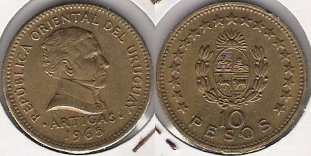 MAKE A MEME View Large Image URY016.JPG Uruguay 10 pesos 1965 Coins of Uruguay José Gervasio Artigas on coins Coats of arms of Uruguay on coins 2006-09-17 own assumed B25es
