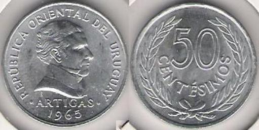 Keywords: URY030.JPG Uruguay 50 centésimos 1965 Coins of Uruguay José Gervasio Artigas on coins 2006-09-18 own assumed B25es