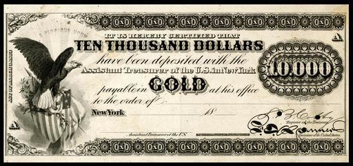 Keywords: US-$10000-GC-1863-Fr-1166g (PROOF).jpg Bureau of Engraving and Printing proof of a 10 000 Gold certificate Series of 1865 Fr Ref 1166g with a vignette of an eagle and shield left and justice bottom center Engraved signatures of Colby Register of the Treasury and Spinner Treasurer of the United States 2014-01-23 14 48 09 Image by Godot13 The Bureau of Engraving and Printing Institution Smithsonian National Museum of American History Use of this image should give credit to the National Numismatic Collection at the Smithsonian Institution 2013030510011547 <noinclude> DEFAULTSORT US- 10000-GC-1863-Fr-1166g PROOF jpg </noinclude> PD-USGov self cc-by-sa-4 0 Godot13 National Numismatic Collection <br>National Museum of American History Currency 2014 User Godot13 NNC Banknotes scanned by User Godot13 NNC United States Banknotes 1861-present Uploaded with UploadWizard 10000 United States dollar banknotes Eagles on banknotes 1865 banknotes |