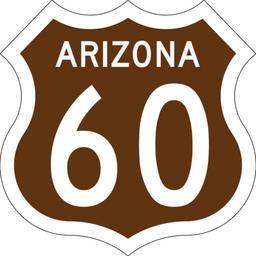 | Keywords: US 60 Arizona 1958 East.svg en This image is a representation of a 1950's technicolor U S Route shield used by Arizona Each color meant a different direction Brown meant East Green meant South Orange meant North and Blue meant West Arizona replaced the signs with traditional Black and White shields in the late 50's early 60's 2015-03-23 File US XX Arizona 1954 East svg Matthew Anderson Base template modified from original File US DOT FHWA MUTCD SHS 2004 3-4 M1-4 384x384mm 6 CA svg Template by Spui and Ltljltlj other versions Custom license marker 2015 03 24 Diagrams of colored U S Highway shields in Arizona Uploaded with UploadWizard U S Route 60 in Arizona |