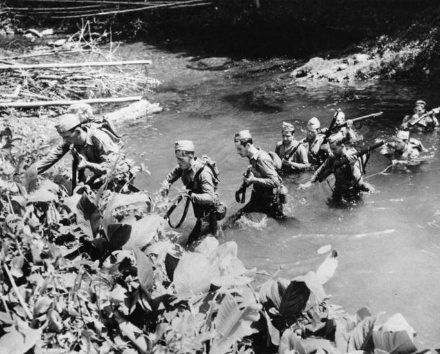 | Keywords: US Bases in the Caribbean during the Second World War OEM21397.jpg US Bases in the Caribbean during the Second World War<br/> United States soldiers carrying their rifles shoulder high cross a river during a jungle warfare training course at one of the remote outposts manned by American troops somewhere in the Caribbean American official photographer Second World War http //media iwm org uk/iwm/mediaLib//39/media-39707/large jpg OEM 21397 205196741 This image was created and released by the Imperial War Museum on the http //www iwm org uk/corporate/privacy-copyright/licence IWM Non Commercial Licence This photograph was taken by American military personnel in their official duties and is public domain under US law consequently the following licence applies in addition to any other claim PD-USGov-Mil Ministry of Information Second World War Official Collection Associated people and organisations United States Army Associated places Caribbean Associated events Second World War Associated themes United States Army 1939-1945 Empire Commonwealth Associated keywords Land Warfare Training Empire Commonwealth photographs PD-USGov American First World War Official Exchange collection Images uploaded by Fæ |