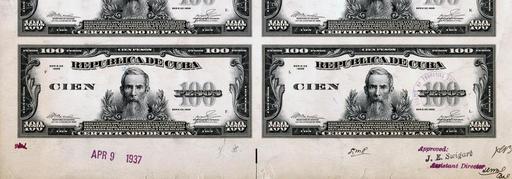 Keywords: US-BEP-Cuba-Certified proof example (100 pesos, Series 1936).jpg en The bottom selvage of BEP certified proofs contain the date of the proof impression and the necessary approval signatures to begin production of the basic plate printing prior to the addition of any overprints containing color tints or seals and serial numbers 2014-10-19 09 59 58 Image by Godot13 Bureau of Engraving and Printing Institution Smithsonian National Museum of American History Use of this image should give credit to the National Numismatic Collection National Museum of American History other versions PD-USGov Godot13 / Smithsonian Institution 2013030510011547 <noinclude> DEFAULTSORT US-BEP-Cuba-Certified proof example 100 pesos Series 1936 jpg cc-by-sa-4 0 Uploaded with UploadWizard 2014 User Godot13 NNC Banknotes scanned by User Godot13 NNC Foreign Banknotes Bureau of Engraving and Printing Cuban proofs Banknotes with a face value of 100 |