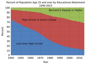 Keywords: US education attainment by year.svg translate yes en Percent educational attainment in the United States by year from 1940 to 2015 Data from http //www census gov/hhes/socdemo/education/data/cps/historical/index html US Census CPS 2016-04-06 own Delphi234 other versions cc-zero Educational attainment statistics for the United States |
