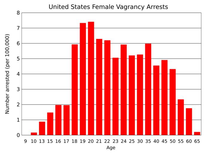 MAKE A MEME View Large Image US female arrests for vagrancy by age.svg translate yes en Arrests in the United States of females for vagrancy in 2014 by age Data from https //www fbi gov/about-us/cjis/ucr/crime-in-the-u s/2014/crime-in-the-u s -2014/tables/table-40 UCR ...