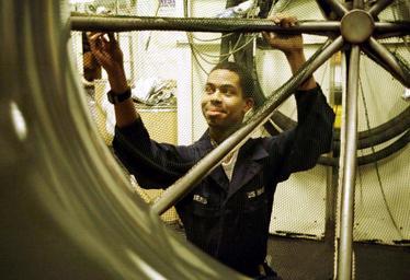 Keywords: US Navy 000301-N-5783C-001 S-3B Viking maintenance in hangar bay.jpg en At sea aboard USS Dwight D Eisenhower CVN 69 Mar 1 2000 -- Aviation Structural Mechanic 3rd Class Wesley Wilburn from Bossler LA performs maintenance on the bellmouth of an S-3B Viking aircraft aboard USS Dwight D Eisenhower CVN 69 The Eisenhower is on a routine six-month deployment to the Mediterranean Sea U S Navy photo taken by Photographer's Mate Airman Alisha Clay RELEASED 2000-03-01 000301-N-5783C-001 Navy http //www navy mil/view_image asp id 2263 U S Navy photo PD-USGov-Military-Navy African American sailors Male soldiers Men at work in the United States Aboard USS Dwight D Eisenhower CVN-69 S-3B Viking Nets Sailors from the United States Navy 2000 photographs Military people in 2000 People of the United States in 2000 March 2000 in the United States Sailors at sea Photographs of standing men |